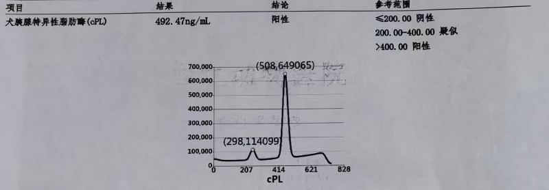 Diagnosztikai eredmény: Pozitív a kutya hasnyálmirigy-specifikus lipázára (cPL)